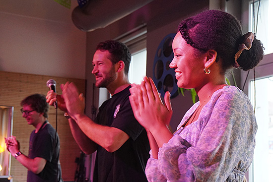 ¡Todo el mundo se ha reunido! El equipo, lxs invitadxs Annemarie Gunkel,