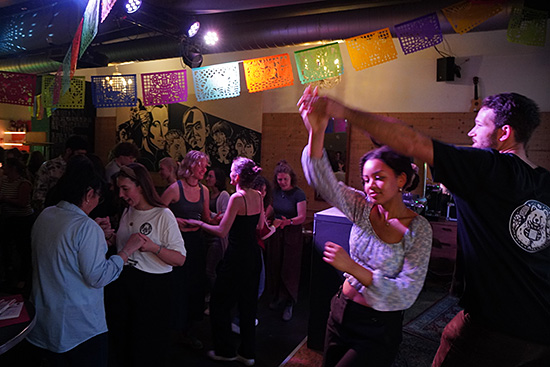 El equipo, amigxs incluidxs, disfruta con los ritmos latinoamericanos