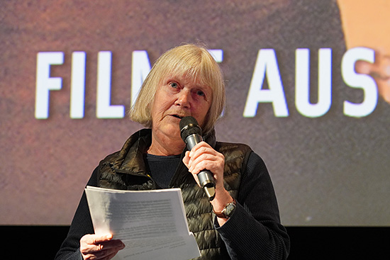 Nach dem Film nimmt Annemarie an einer Fragerunde mit dem Publikum teil,