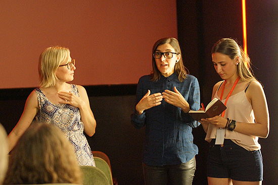 En la charla con el público con la coordinadora del festival Kathrin Frenz y la intérprete María Vallecillos Soldado.