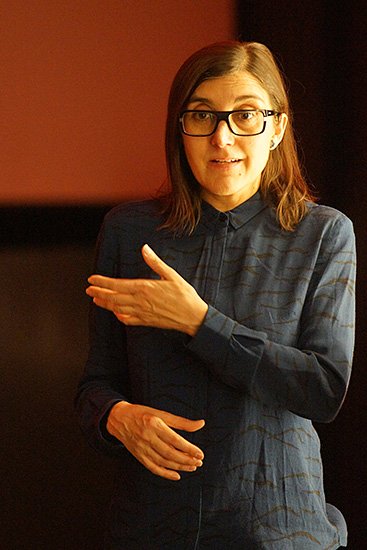El público formado principalmente por estudiantes se muestra interesado: Júlia ist trata de un semestre de Erasmus en Berlín.