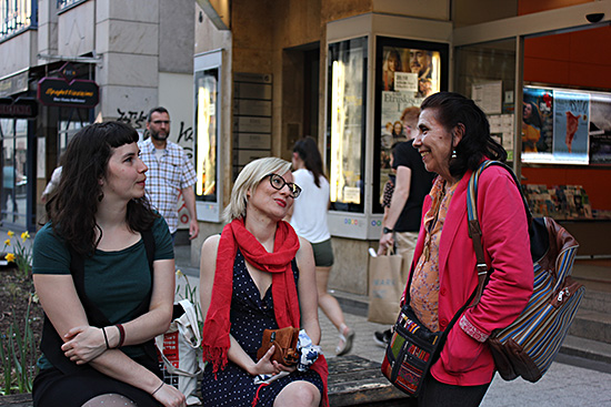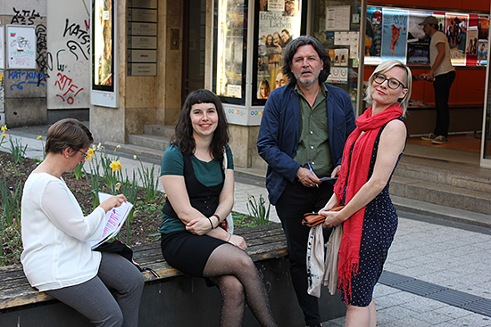 Gabriele Elsäßer, coordinadora en Stuttgart, y el equipo directivo del festival Pola Hahn, Paulo de Carvalho y Kathrin Frenz.