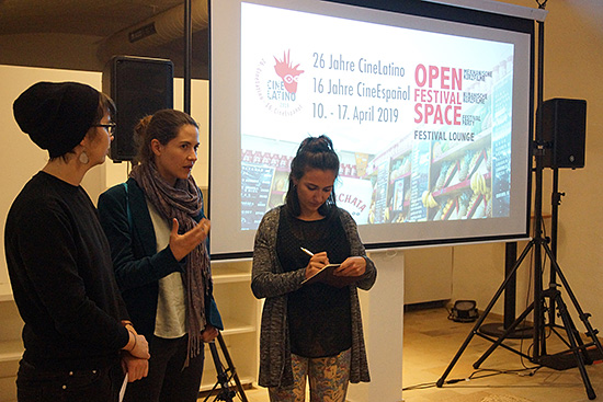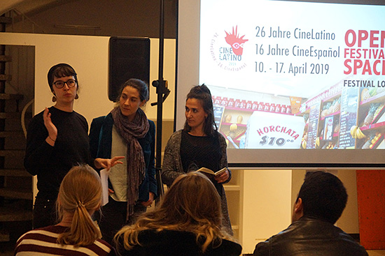 ... und die Regisseurin Sofía Gómez Gordova stand, in Begleitung von Festivalkoordinatorin Pola Hahn und Doltmetscherin María Vallecillos Soldado, für ein anschließendes Gespräch bereit.
