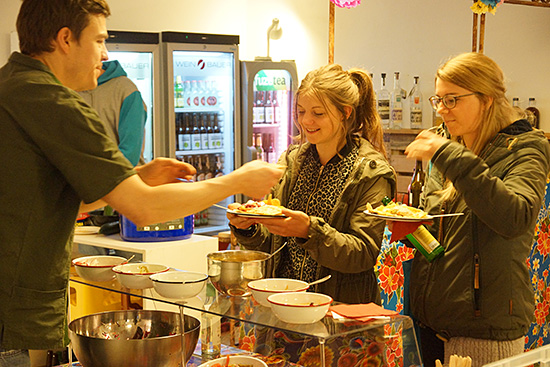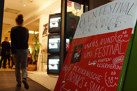 Der Open Festival Space ist eröffnet und die Besucher*innen freuen sich über Snacks, Getränke und zahlreiche Kurz- und Langfilme!