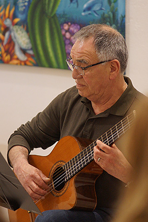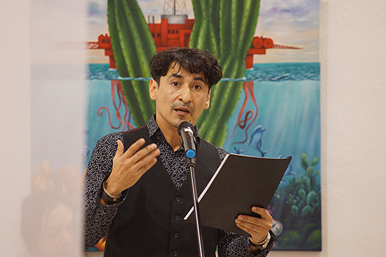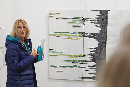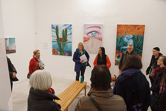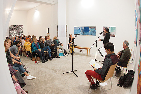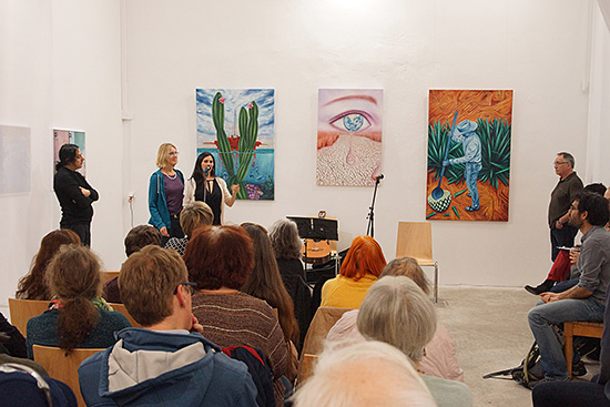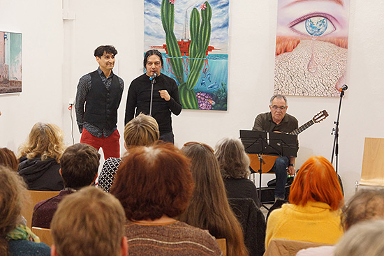 Die Künstlerinnen der Ausstellung Memoria, Natalia Zumarán und Lissi Maier-Rapaport begrüßen die Gäste am Dienstag zum Kunst, Poesie & Musik Abend.