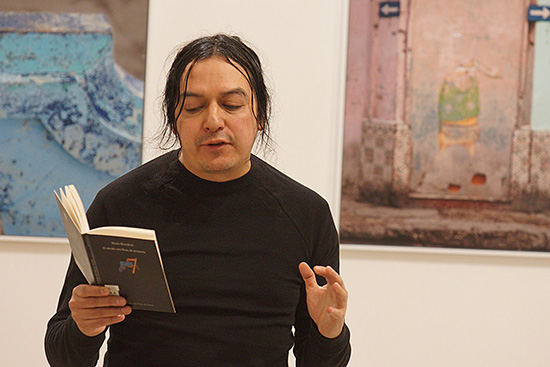 Festivalleiter Paulo de Carvalho unterhält sich mit Künstlerin Natalia Zumarán.