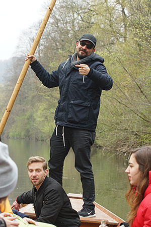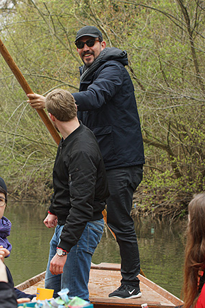 Festivalgast Iván Porras Meléndez probiert sich selbst als Stocherkahnkapitän.