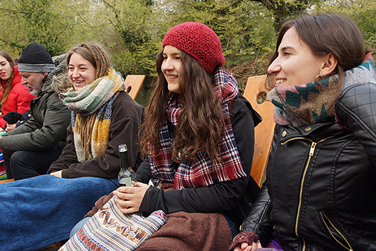 Mit ausreichend Tee und kuscheligen Decken halten sich alle warm.