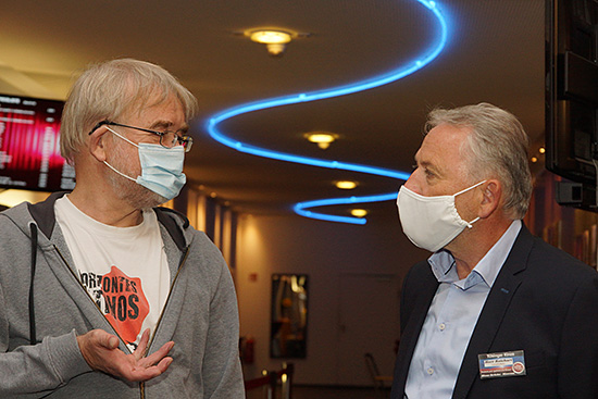 Ein treuer CINELATINO Fan unterhält sich mit dem Geschäftsführer des Kino Museums Martin Reichart.
