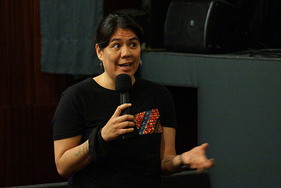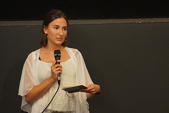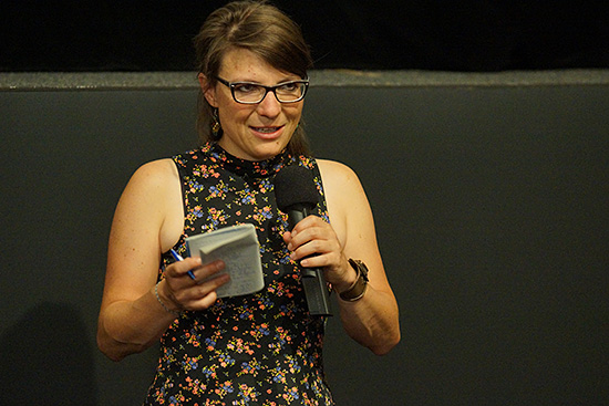 Festivalkoordinatorin María Vallecillos Soldado dolmetscht für das nicht immer spanisch sprechende Publikum.