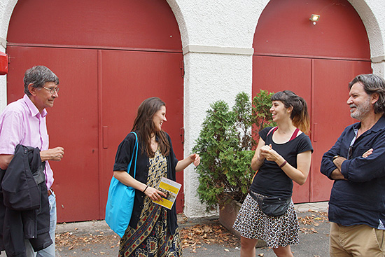 Lin holt sich Filmtipps von Bernd Wolpert (EZEF), Pola Hahn und Festivalleiter Paulo de Carvalho.