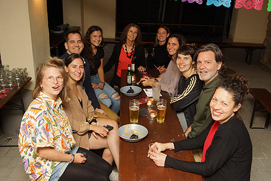 Angeregte Plauderstimmung beim Festivalteam nach erfolgreichem Tagewerk