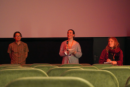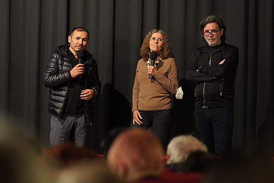 Regisseur Henry Vallejo, Dolmetscherin Irene Jung und Festivalleiter Paulo de Carvalho im Kino Museum.