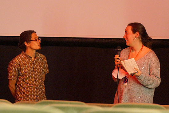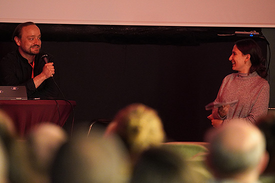 In Begleitung von Festivalleiter Paulo de Carvalho und Dolmetscherin María Vallecillos Soldado beantwortete Bruna erfreut alle Publikumsfragen.