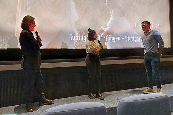 Un día después, la codirectora María Vallecillos Soldado y el director del festival Paulo de Carvalho, junto con el director general del cine Delphi Arthaus Kino, Simon Erasmus y Jefe del Departamento Cultural Marc Gegenfurtner inauguran el festival en Stuttgart.
