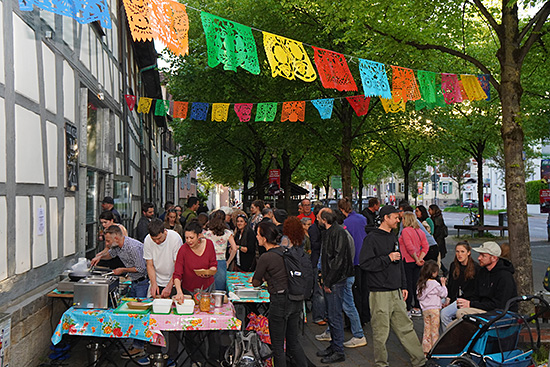 Das Team von Pico Teca verkauft unter bunten Fahnen mexikanische